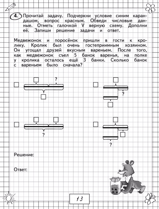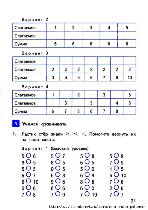 В конце учебника Моро для детей размещены задачки повышенной сложности. Вообще же, все задания расположены от наиболее простых к наиболее сложным, что позволяет ребенку освоиться, запомнить базовые вещи и уже после этого переходить к тому, что посложнее. Авторы позаботились о том, чтобы малышу все было понятно: все объяснено простым, доступным языком, приведены рисунки и схемы. Задания тоже как нельзя более подходящие: нет ни заумных и сложных, над которыми будут коллективно ломать головы папа, мама и бабушка с дедушкой, ни примитивных, которые не способны ничему научить, не вырабатывают у ребенка никаких полезных навыков. Задания в «Школе России», как уже говорилось выше, учат анализировать и размышлять, но при этом на уровне, доступном вчерашнему детсадовцу.