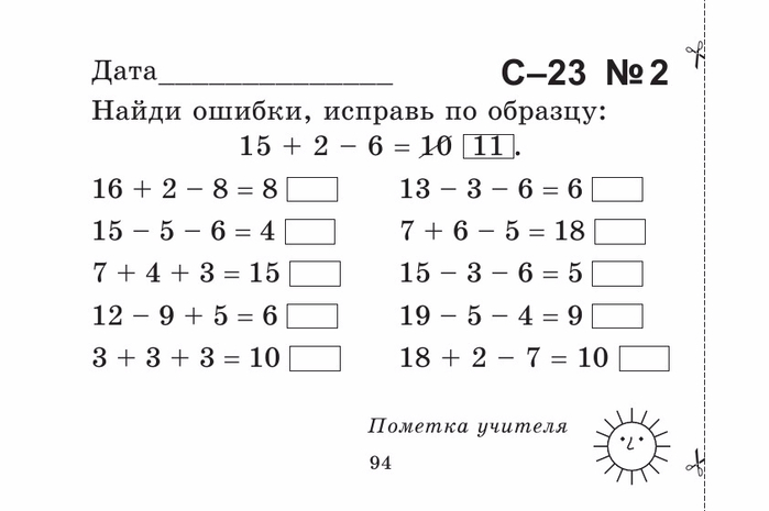 Из необычного и интересного в учебнике Петерсон можно отметить то, что решать, рисовать, соединять линии — в общем, выполнять задания — допустимо в самом учебнике. Задания, кстати сказать, тоже не совсем стандартные: например, нужно раскрасить картинку правильным цветом, решить ребус или составить узор. Многие задачки — логического характера, требующие от ребенка умения объяснить, почему будет именно так, а не иначе. Есть и сложные задания олимпиадного уровня, но — и это, скорее, минус — какой-либо градации у Петерсон, как во многих других учебниках (от простого к сложному), не наблюдается, упражнения даны в хаотичном порядке вне какой-либо закономерности.