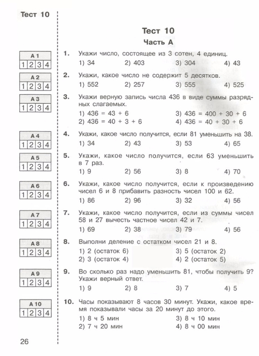 тест для учащихся 3-4 классов по математике задания не простые. Пожелаем удачи.