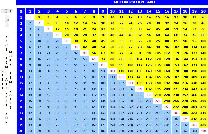 Используя второй столбик вы получите таблицу квадратов чисел. Например берем в таблице число 11 и находим напротив во втором столбике квадрат числа 121.