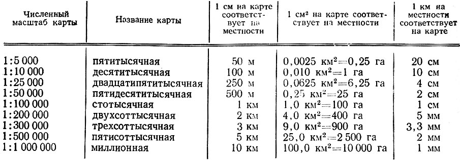 а) в 1см –200м; б) в 1см –50м; в) в 1см –1км; г) в 1см –40км; д) в 1см –500км.