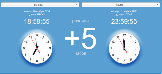 Пример: В Москве 00:00 часов, а в это время в Хабаровске 07:00 утра