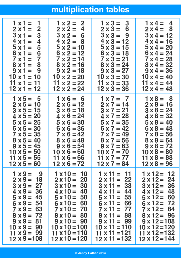 Таблицы для умножения от 7 до 20 доступны в формате pdf, в формате для печати и загрузки для удобства использования.