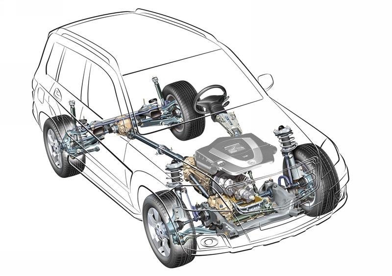 Наибольшее распространение получила полноприводная трансмиссия с вискомуфтой. В ее состав входят МКПП или АКПП, сцепление, раздаточная коробка, карданные и главные передачи, межколесные и межосевой дифференциалы.