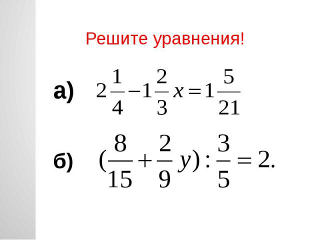 При решении уравнений необходимо пользоваться правилами решения уравнений, свойствами сложения и вычитания.