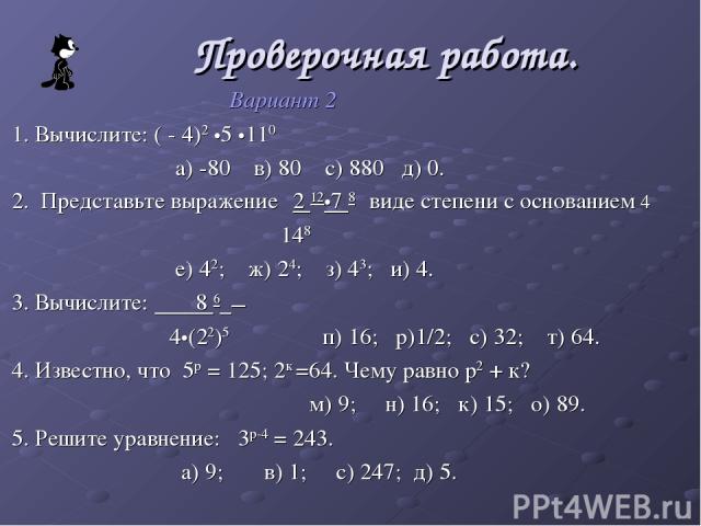 - Показатели (включая законы показателей)