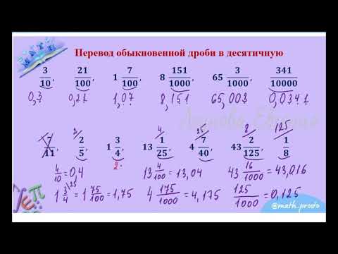 В статье приведены самые легкие примеры перевода в десятичные дроби. Поняв методику перевода на простых примерах, вы легко сможете решать самые сложные из них.