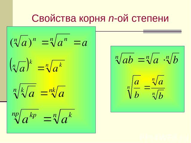 ΠΌΠ½ΠΎΠΆΠΈΡΠ΅Π»ΠΈ ΠΈΠ·-ΠΏΠΎΠ΄ Π·Π½Π°ΠΊΠ° ΠΊΠΎΡΠ½Ρ, ΠΏΠΎΠ»ΡΡΠΈΠΌ:. ΠΠΎΠ΄ΡΠ΅ΡΠΊΠ½Π΅ΠΌ, ΡΡΠΎ ΡΠ°Π²Π΅Π½ΡΡΠ²ΠΎ ΡΠΏΡΠ°Π²Π΅Π΄Π»ΠΈΠ²ΠΎ ΡΠΎΠ»ΡΠΊΠΎ ΠΏΡΠΈ Π° β₯ 0 ΠΈ b β₯ 0. Π΅ΡΠ»ΠΈ ΠΆΠ΅ Π°