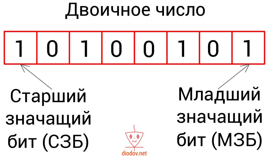 Можно заметить особенность: если в десятичной системе разряды умножаются на десять (1, 10, 100, 1000 и так далее), то в двоичной, соответственно, на два: 2, 4, 8, 16, 32.