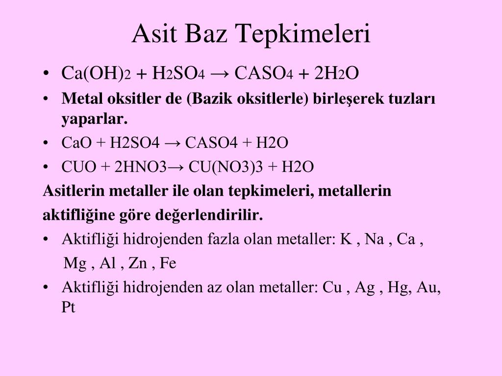 CA (OH) 2 + H 2 SO 4 → CASO 4 + 2H 2 O