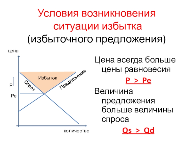 QE = QD=QS и PE = PD = PS, где Qe-равновесное количество, QD -величина спроса, Qs — величина предложения, РЕ-равновесная цена, Рв- цена спроса, Ps — цена предложения.