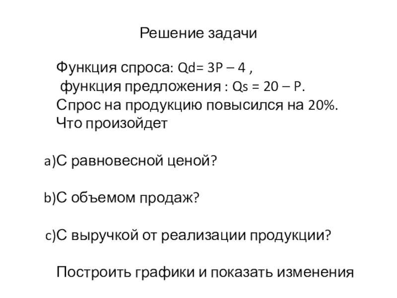 Предположим, что функция спроса на персиковый сок задана формулой QD = 800 -4Р, а функция предложения: Qs=4Р — 320.