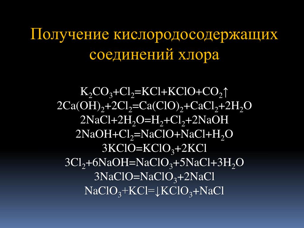 С кислородом хлор образует оксиды в которых он проявляет степень окисления от +1 до +7: Cl2O, ClO2, Cl2O6, Cl2O7.