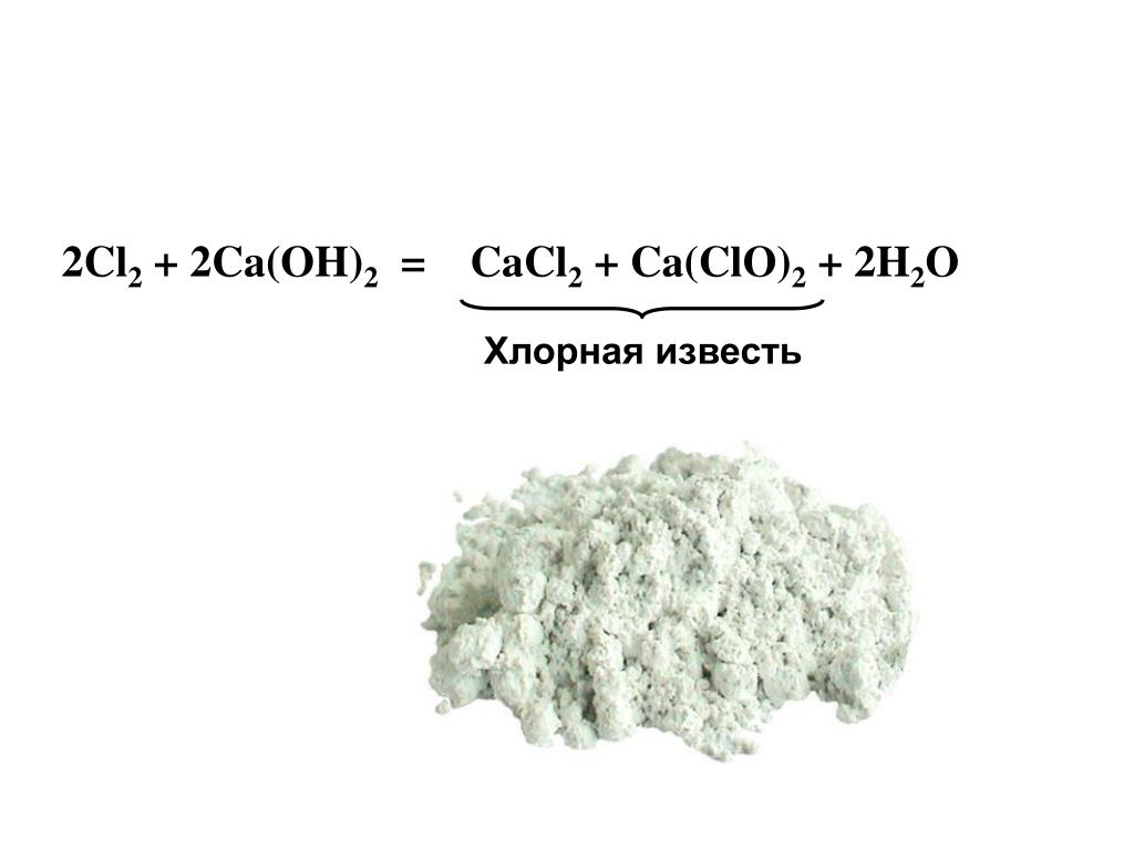 - Cl2 + Ca(OH)2 → CaCl(OCl) + H2O