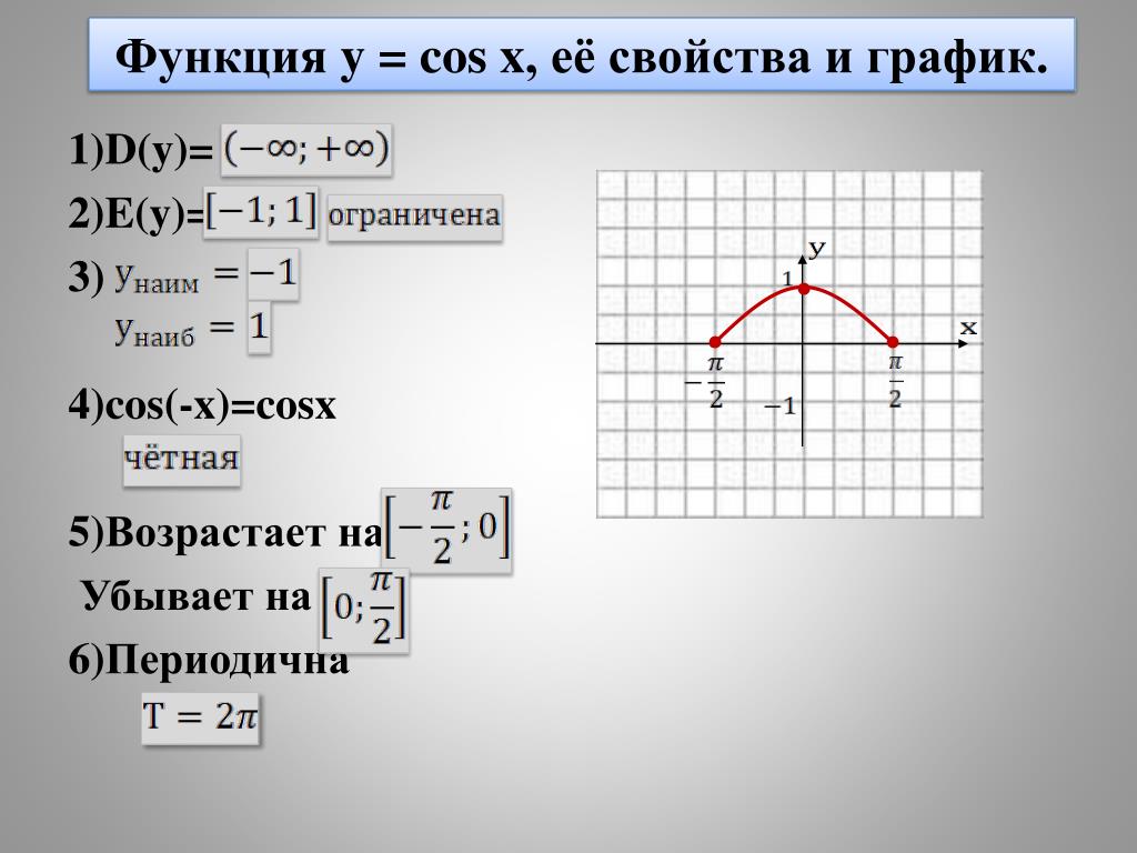 Так как – 114,5490 ≤ у ≤ 57,2970, то данному отрезку принадлежит только одно решение уравнения cos y = 0, это