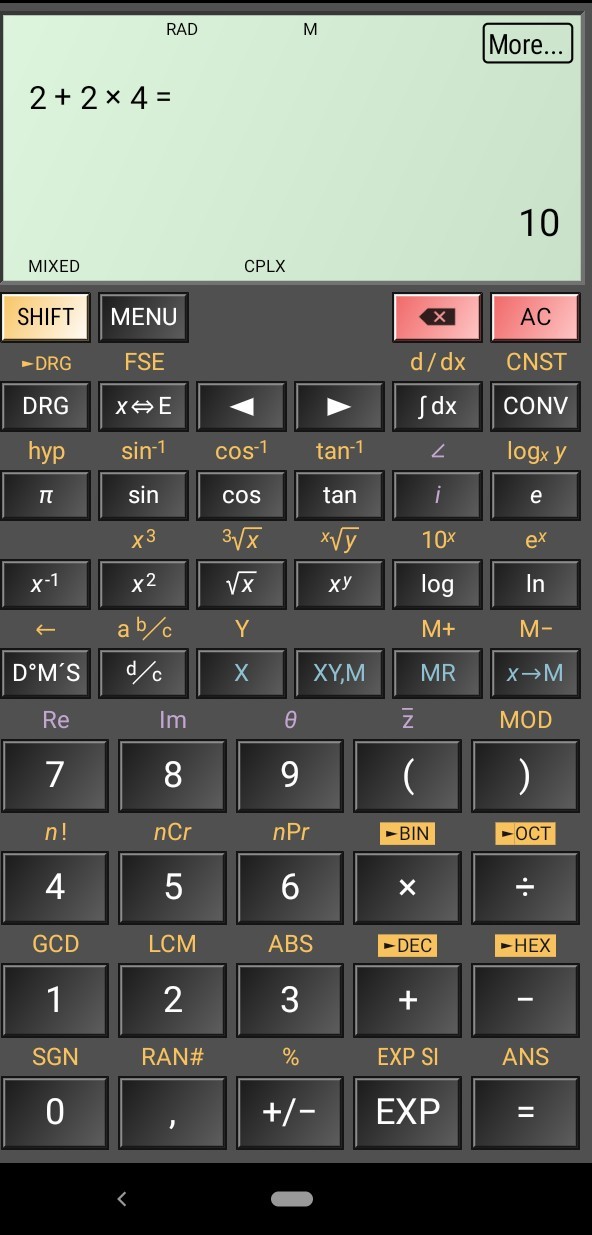 Это краткое руководство расскажет о том, как считать на научном калькуляторе scientific calculator. Здесь рассматривается довольно старая модель с 56 функциями 56 scientific functions. Все возможности этого калькулятора описаны полностью. Мера угла может быть выражена в градусах degrees , радианах radians или в градах grads. В режиме deg введённое число интерпретируется как мера угла в градусах, в режиме rad в радианах, в режиме grad в градах. В режиме deg число на входе интерпретируется этими функциями как значение в градусах, в режиме rad в радианах, в режиме grad в градах.