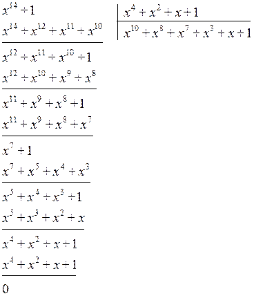 Это же делимое можно было получить, выписав отдельно многочлен x6 + 2x4 + x7 + 2x5 и вычтя из него многочлен x6 + x7