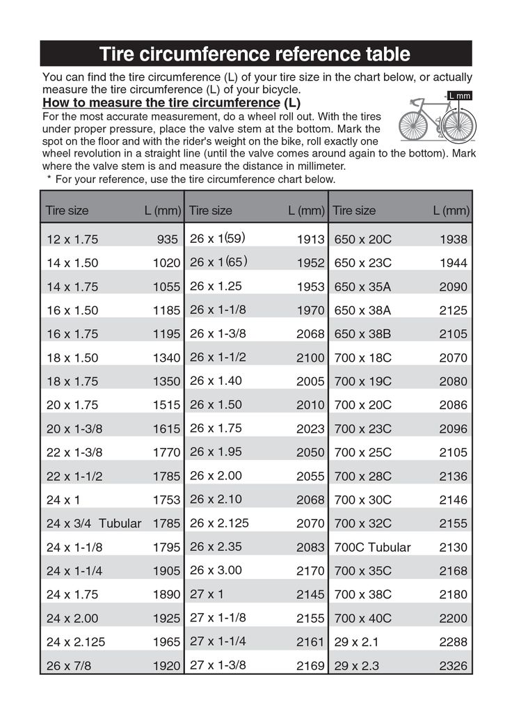 | Длина окружности шины: | ммсмдюймы |