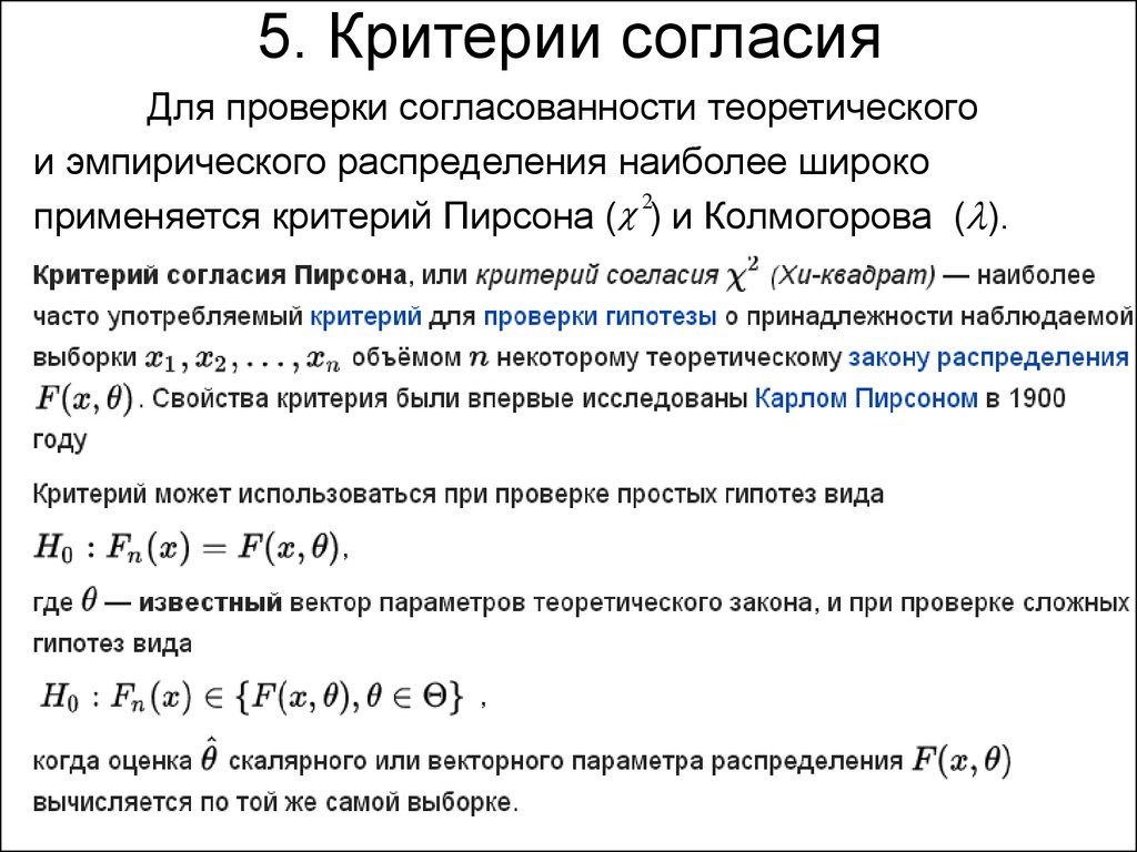 Критерий согласия это правило, по которому эту гипотезу отвергаем или принимаем.