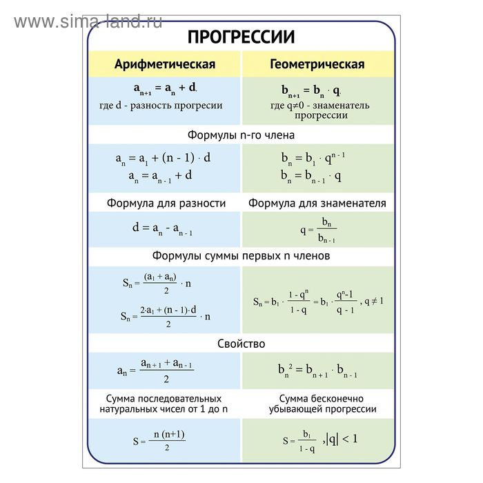Геометрическая прогрессия — это последовательность, в которой каждый член имеет фиксированное отношение, известное как обыкновенное отношение. Г.П. обозначает геометрическую прогрессию. 9n} – 1} \right)}}{{r – 1}}\)