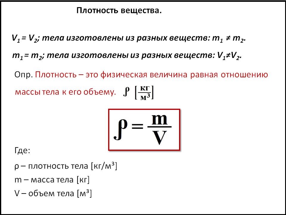 Плотность «d» определяется как масса «m», деленная на объем «V».