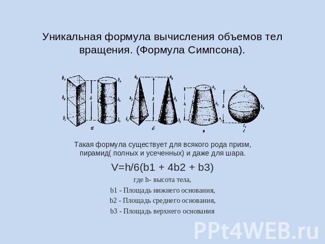 е. её можно использовать для вычисления объема тела, полученного вращением вокруг оси криволинейной трапеции