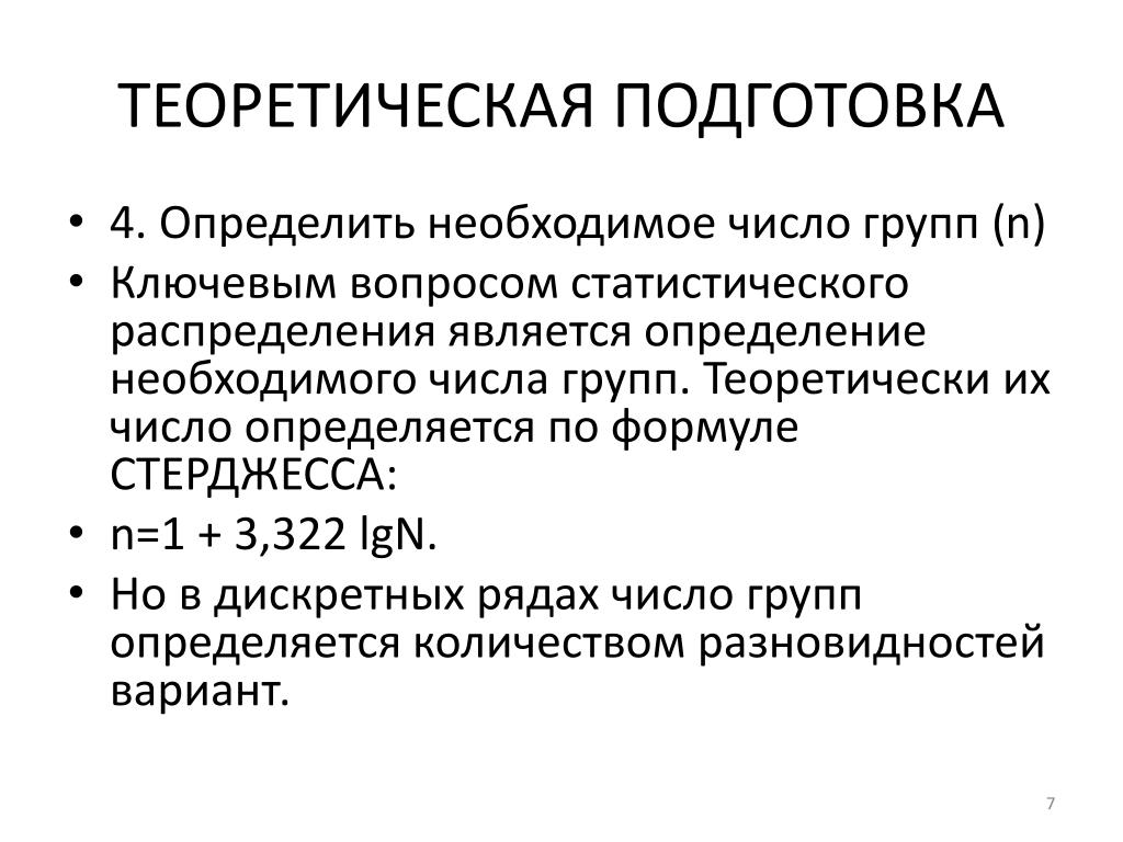 Определяем число групп по формуле Стерджесса: