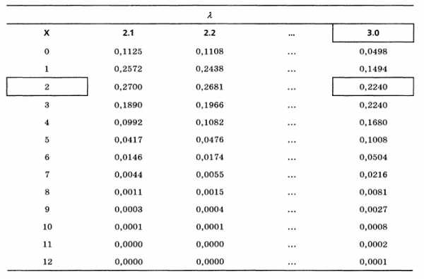 За значеннями функції Пуассона знаходимо ймовірність