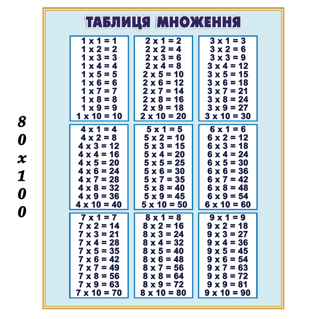 Таблица умножения. плакат для образования детей. Детская карточка по математике.