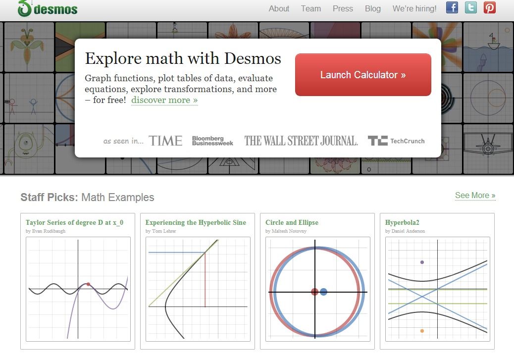 Desmos Graphing Calculator — это открытый онлайн-инструмент с широкими числовыми и визуальными универсальными возможностями. Он позволяет пользователю отображать и маркировать точки на декартовой плоскости, демонстрировать решения уравнений и неравенств, графически отображать функции и создавать регрессионные модели из наборов данных, среди прочих возможностей. Он имеет мощный встроенный инструмент калькулятора и инструмент ползунка, который позволяет пользователю создавать динамические визуальные эффекты, иллюстрирующие изменения или привлекающие внимание к определенным компонентам.