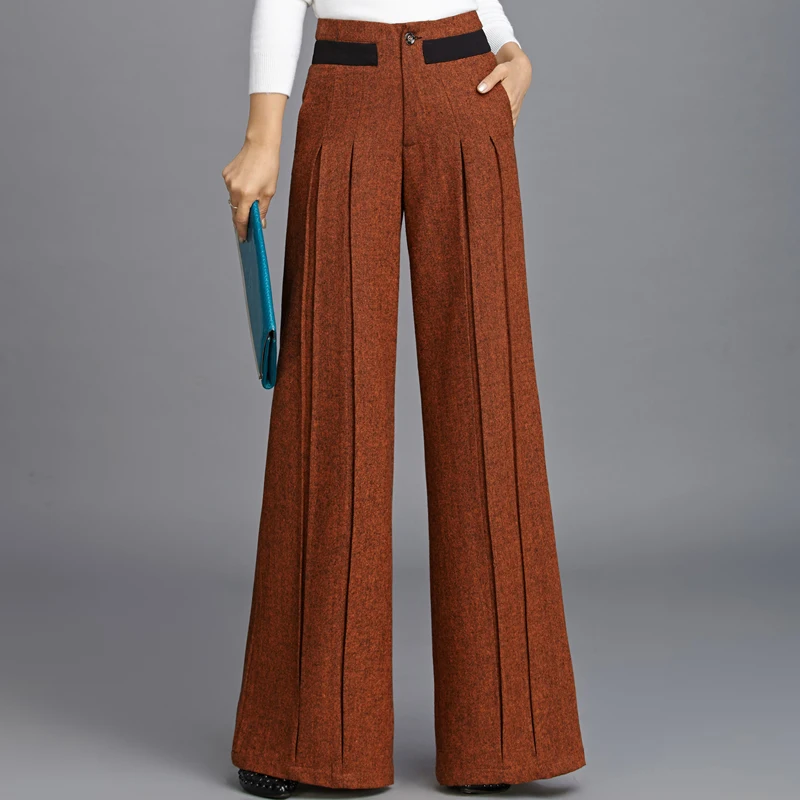 Брюки шьются из велюра, твида, денима, вискозы и прочих материалов.