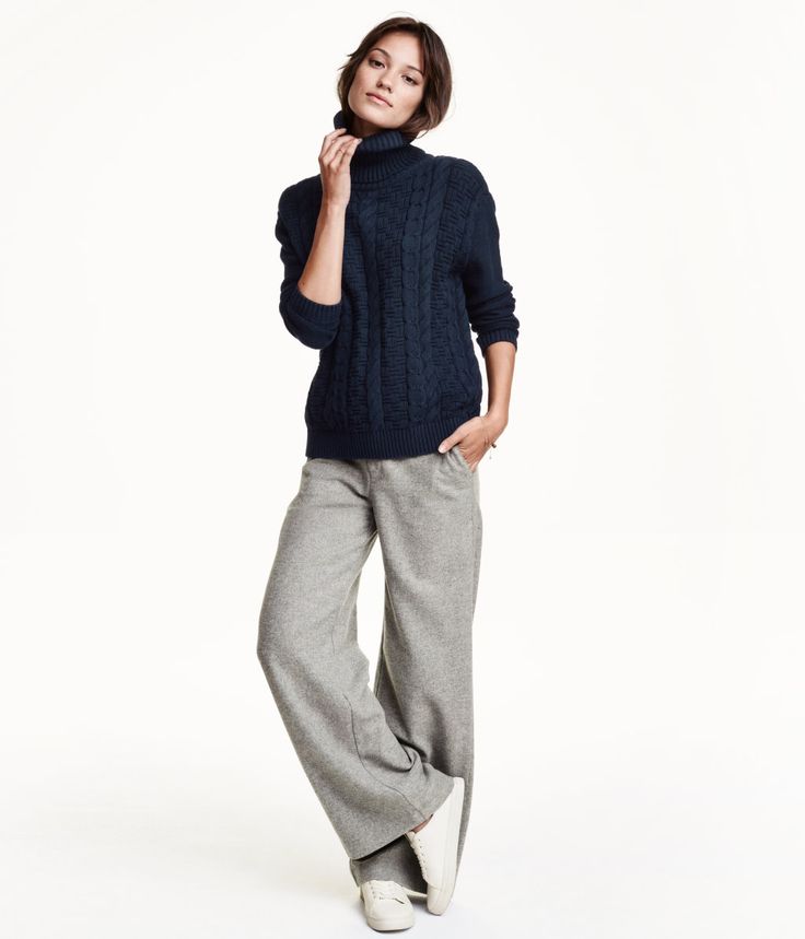 Для штанов, сделанных из меланжевой ткани, подберите однотонный верх.