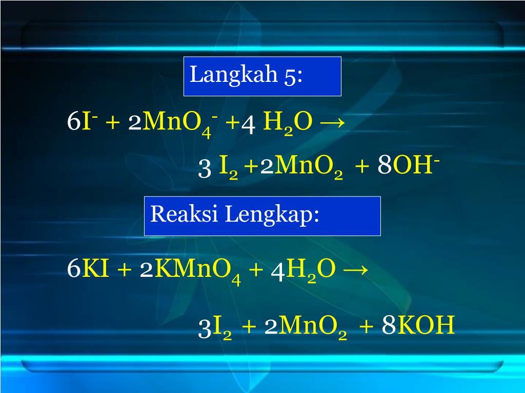 - H 2 O 2 (водн.) + OI- (водн.) = H 2 O (л) + O 2 (г) + I — (водн.