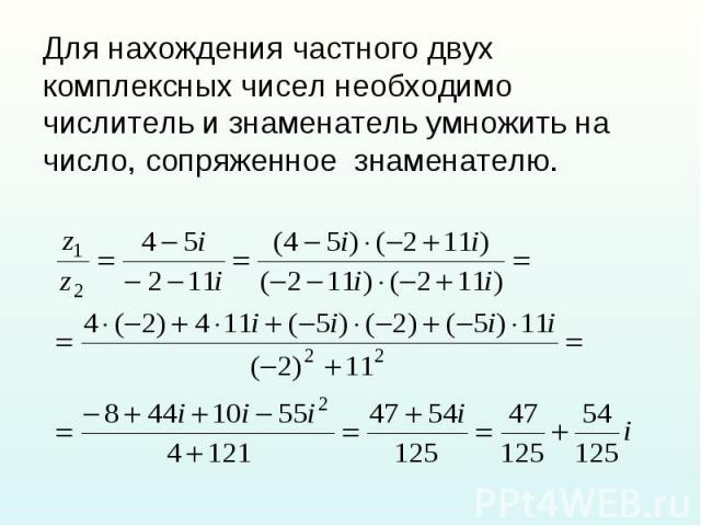 166.Найти частное двух комплексных чисел.