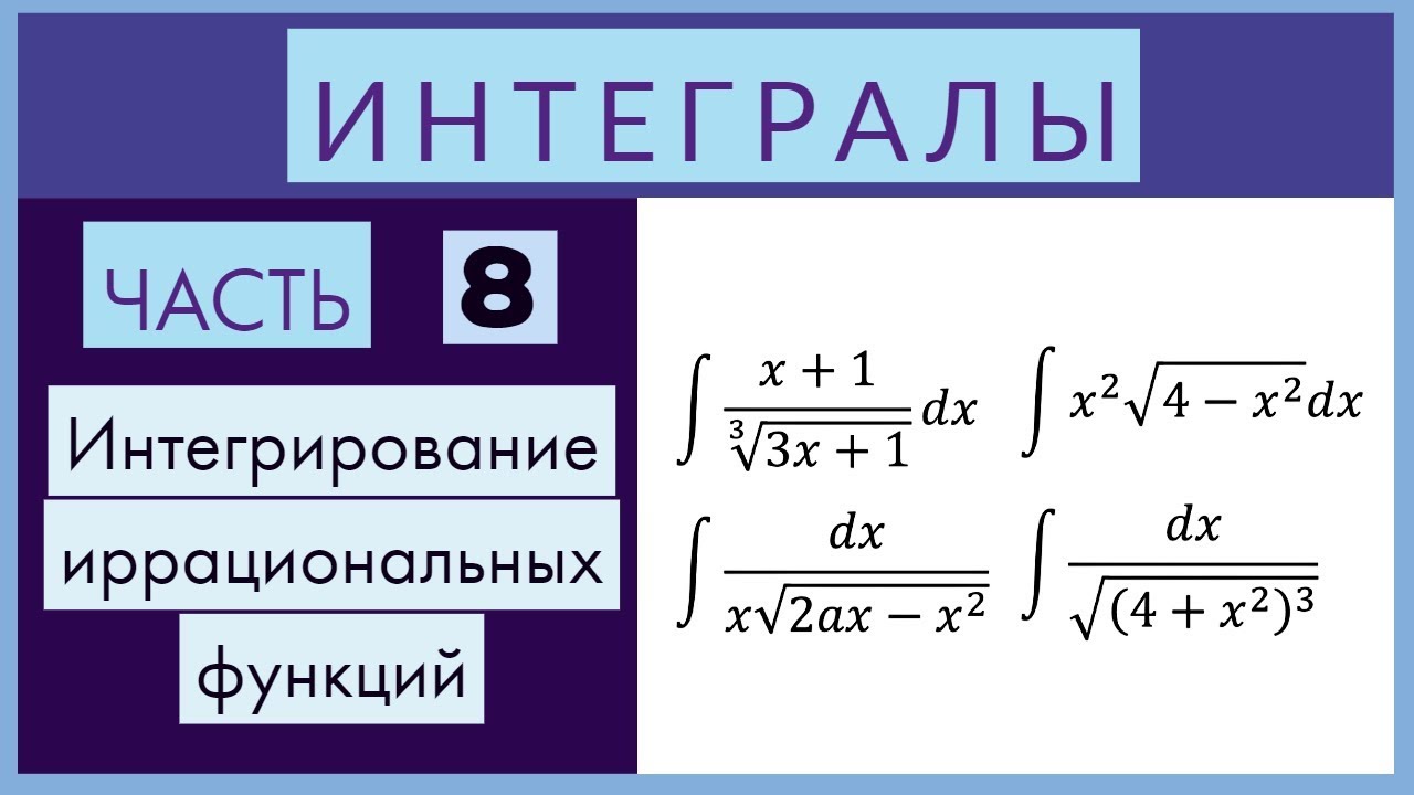 Простое объяснение принципов решения интегрирования иррациональных функций и 10 наглядных примеров.