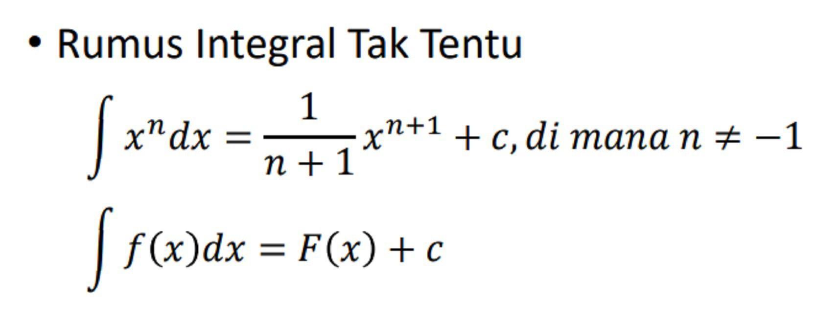 - d/dx {φ(x)} = f(x) <=> ∫f(x) dx = φ(x) + C + C, n ≠ -1