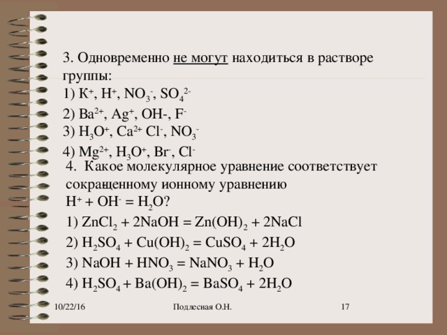 lioh+fe2(so4)3 (3 железа) agno3+alcl3 fecl3+ naoh hno3+koh bacl2+k2co3 al(no3)3+h4po4