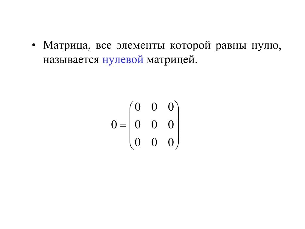 1) Матрица, все элементы которой равны нулю, называется ноль-матрицей: