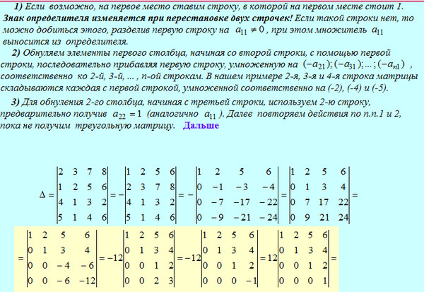 -сначала «размножить нули» в некотором ряду, т.е. получить ряд, в котором только один элемент не равен нулю, остальные нули;