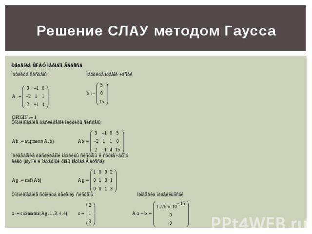 16.02.2007 · Частный случай Исключение Гаусса, возникающее, когда расширенная матрица приводится к сокращенной ступенчато-строковой форме, называется методом Гаусса-Жордана …