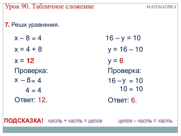 Пример уравнения с х с вычитанием и сложением для 4 класса.