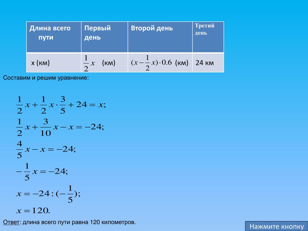 прочитал Х + 0,2Х = 1,2Х страниц, а в третий день прочитал 1,2Х + 24.