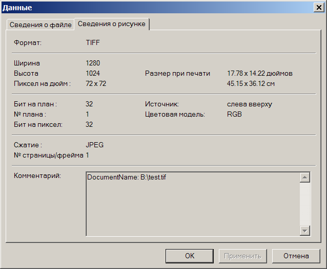 | Технические детали | TIFF-файл состоит либо из множества различных блоков — тегов, содержащих всю информацию об изображении, либо вся эта информация может быть записана в одном файле, сжатом с использованием алгоритма сжатия LZW (метод Лемпела-Зива-Уолша, сжатие без потерь информации). TIFF может сохраняться в двух форматах — Motorola или Intel, в зависимости от первого слова. Если это MM, то формат Motorola, II — формат Intel. Это связано с тем, что процессоры Motorola читают и записывают числа слева направо, а процессоры Intel — наоборот.![]() |