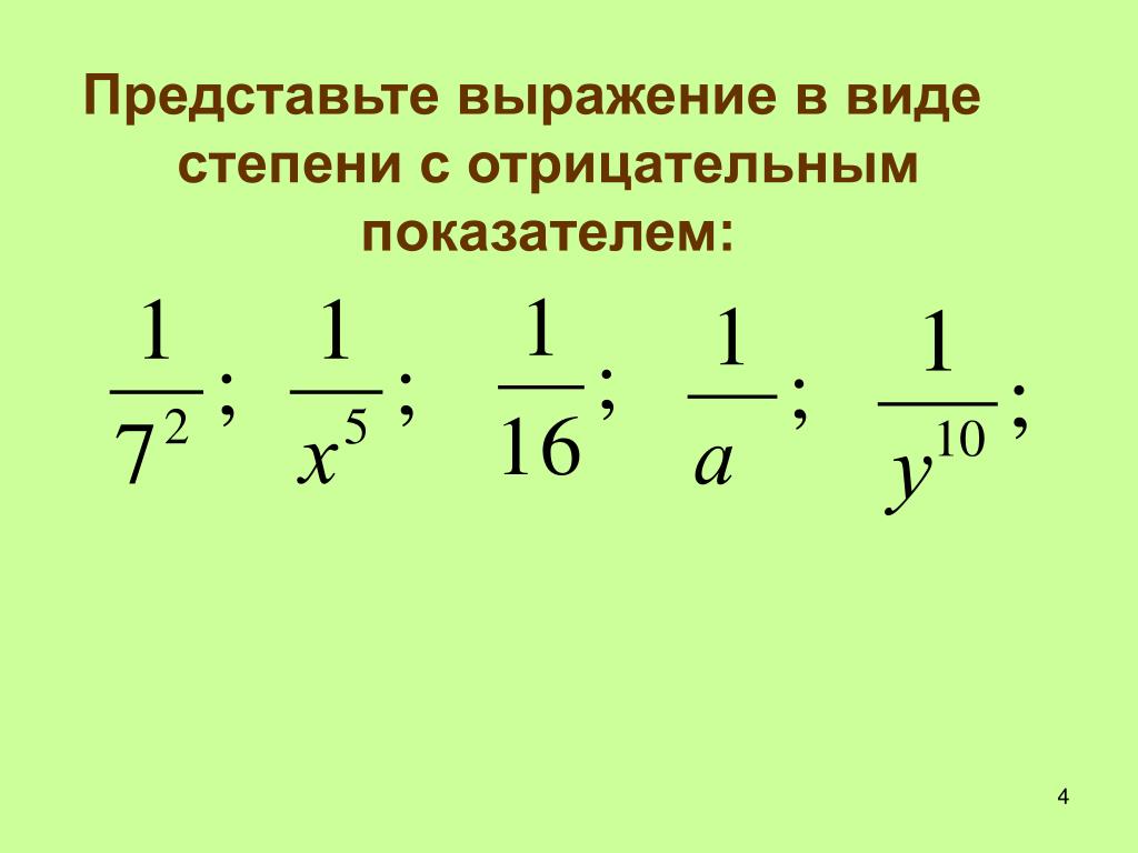 Выражение, которое мы получили на шаге 2, имеет отрицательные показатели.