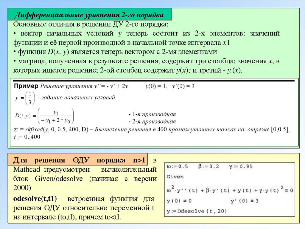 - Решение дифференциальных уравнений Решение квадратных уравнений Решение системы линейных уравнений (метод подстановки) Решение системы линейных уравнений (метод Гаусса) Решение системы линейных уравнений (метод Крамера) Решение системы линейных уравнений (матричный метод)