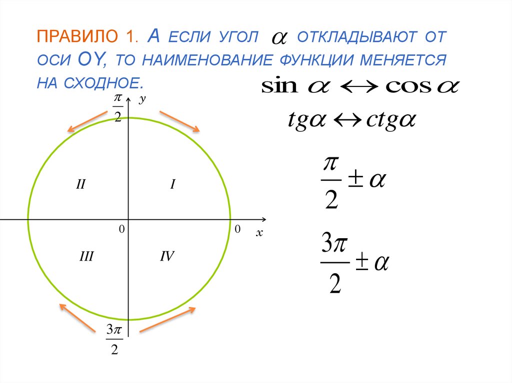 3. Если у вас есть в скобочках (90° или π/2) и (270° или 3π/2), то функция меняется .