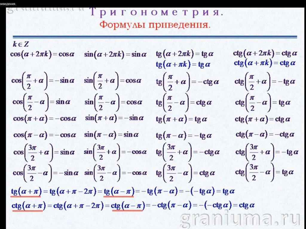 Теперь рассмотрим сами формулы приведения.