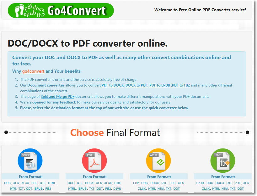 На сайте Online-Convert.com имеется онлайн конвертер документов, с помощью которого мы можем решить нашу задачу. Веб-сервис работает на русском языке.