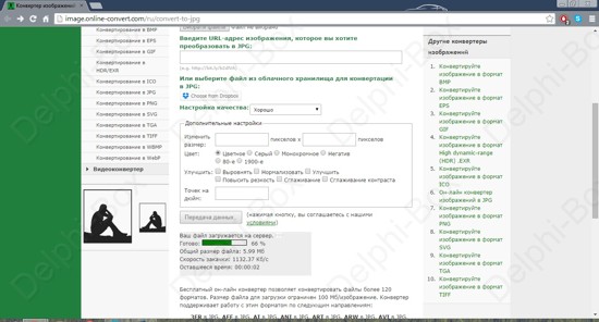 - Выберете пункт «конвертирование» в JPG в разделе «Конвертер изображений».