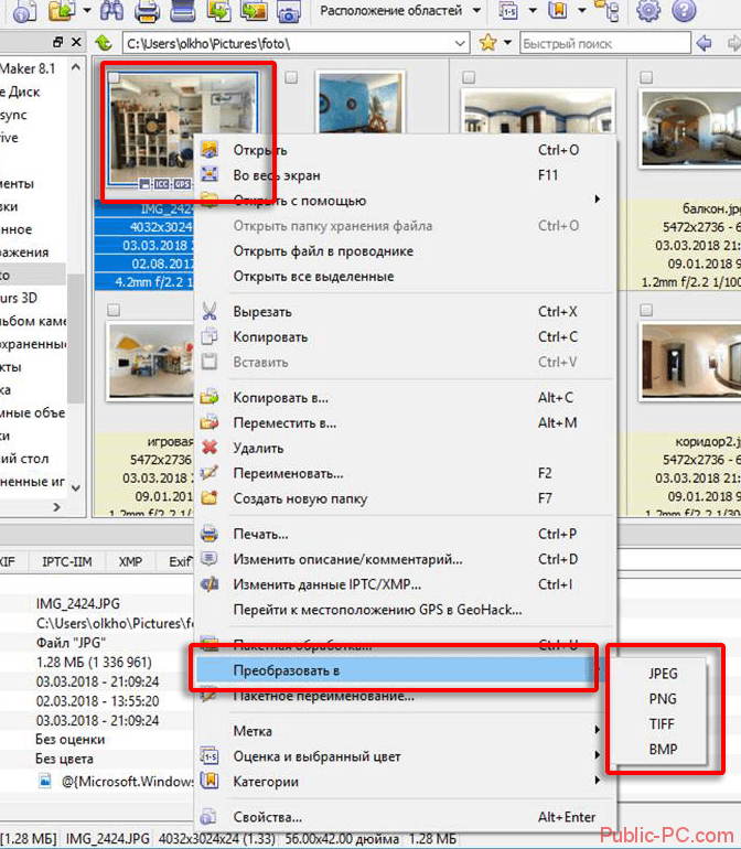 Конвертировать BMP в JPG могут также программы для просмотра картинок с расширенными возможностями, к которым относится IrfanView .
